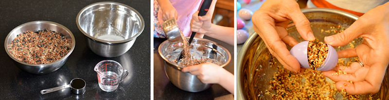 - Spray the inside of your plastic eggs with cooking spray to ensure that the mixture doesn’t get stuck and makes it easy for it to come out when you are done.