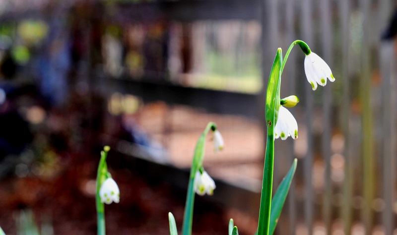 Even though my yard was a complete mess when we moved in many moons ago, there was evidence that at one time there was someone who loved gardening. Although it took some love and moving things around a bit, some of my initial foundation plantings (Aucuba, Azalea, Nandina, Oakleaf Hydrangea, and Mohonia) were all thanks to the original homeowner. But it wasn’t until I cleared away all the English Ivy and looked very closely that I found one of my favorite gifts from the previous homeowner – Loddon Lilies. And it wasn’t until very recently that I looked closely enough to see the green dots on their petals that I realized that my lilies weren’t Lilly of the Valley, but its lookalike, the Loddon Lily. (Now I’m no botanist nor Master Gardener, but I don’t think that either are actually lilies at all. Can anyone verify that?)