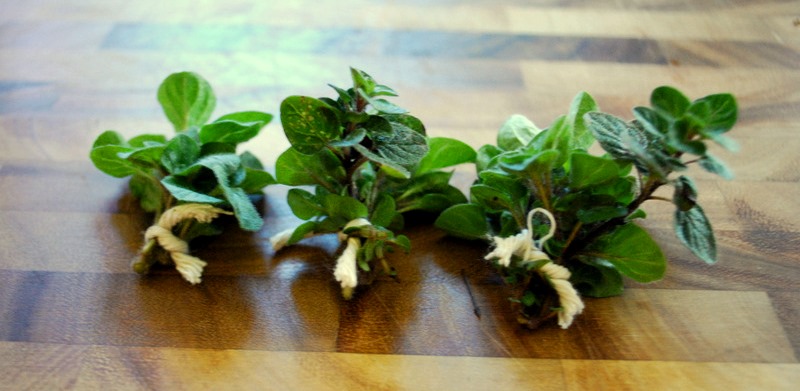 - Wash oregano and pat dry with a paper towel…then gather into small bouquets by tying them with twine to secure. (Note, you can chop the oregano, but I use this method instead. Oregano will get very bitter when grilled and it’s not fun to pick all the pieces off the pork to ready it for grilling.)