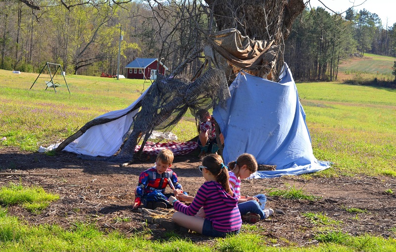 Now Britt and the girls did get away to the Spring Break mecca of Gray, Georgia for a few days…where they visited close family friends at their amazing home that sits on 100 + acres of land. The kids ran around getting dirty, building forts, sloshing around in creeks, exploring the surrounding woods, and literally getting “red-necks” from the sun…having the times of their lives. Really…as it should be. And it only cost us a tank of gas and a 1.5 hour drive from home. Not only did the kids have an amazing time, but Britt was able to reconnect with a friend who she longs to see more of…and now she has. And there was also just something so special and calming about being able to do so in the comfort of a dear friend’s home.