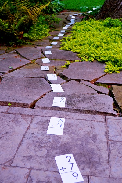 LOVE the flashcard trail!!! Reminds me of your creative singing and dancing to teach me multiplication Britt!! Great idea!!